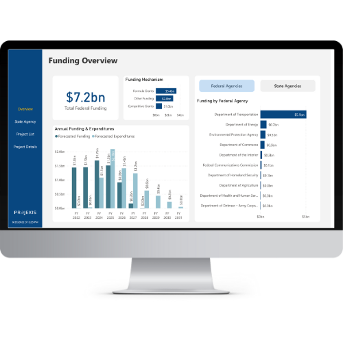 With Projexis, produce real-time, easy-to-read dashboards to gain better insight into project status, federal funds received, expenses, aging reports, and more.
